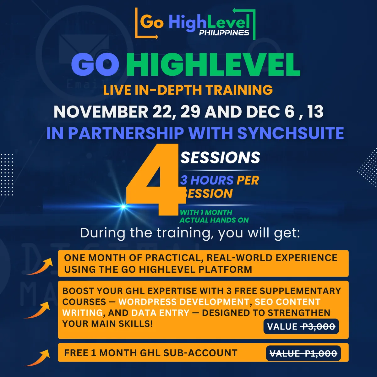 At Go HighLevel Philippines, our training is designed for advanced or specialist-level skills, not just basic knowledge. We provide in-depth guidance on best practices, tips, techniques, and strategies, and detailed explanations of why certain approaches are used, including pros and cons.